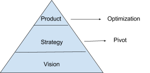 스타트업은 보통 회사의 비전을 가지고 출발하며, 그 비전을 달성하기 위해 제품 개발, 마케팅, 파트너십, 구조적인 디자인 등을 포함하는 전략을 세운다. Product는 전략의 결과물이며, 기업가들은 끊임없는 최적화를 통해 그 비전을 고수하거나 변화를 시도한다. 이 것을 빠르게 반복하여 고객 통찰력을 얻는 새로운 방법이 바로 린 스타트업이다.