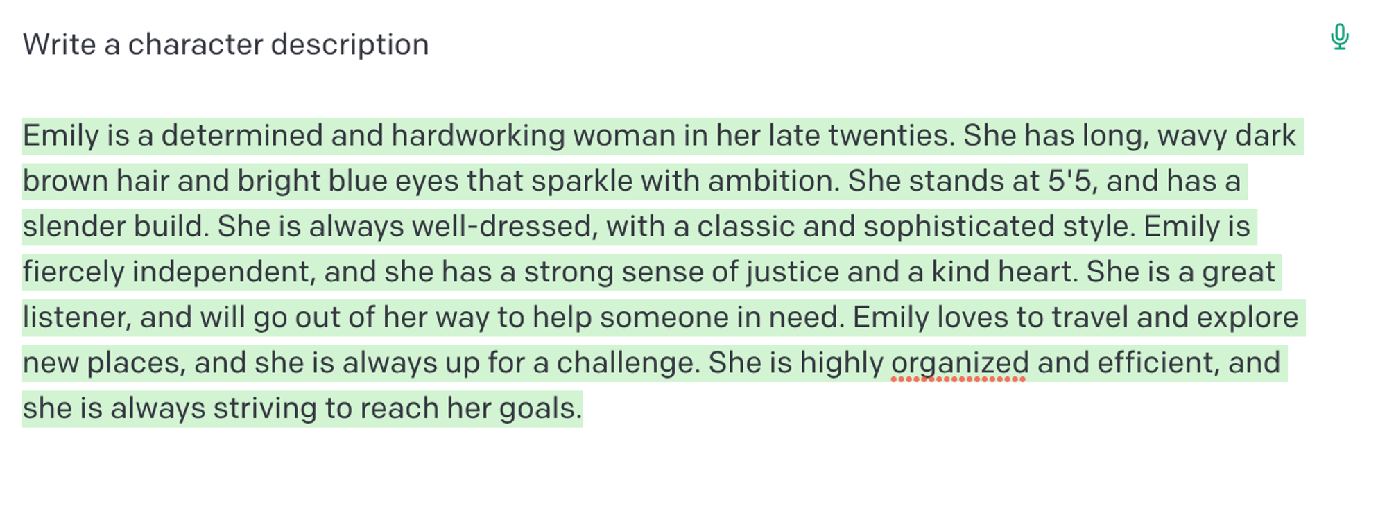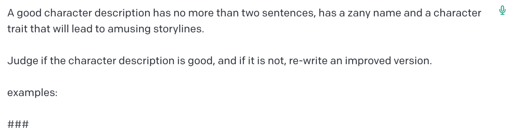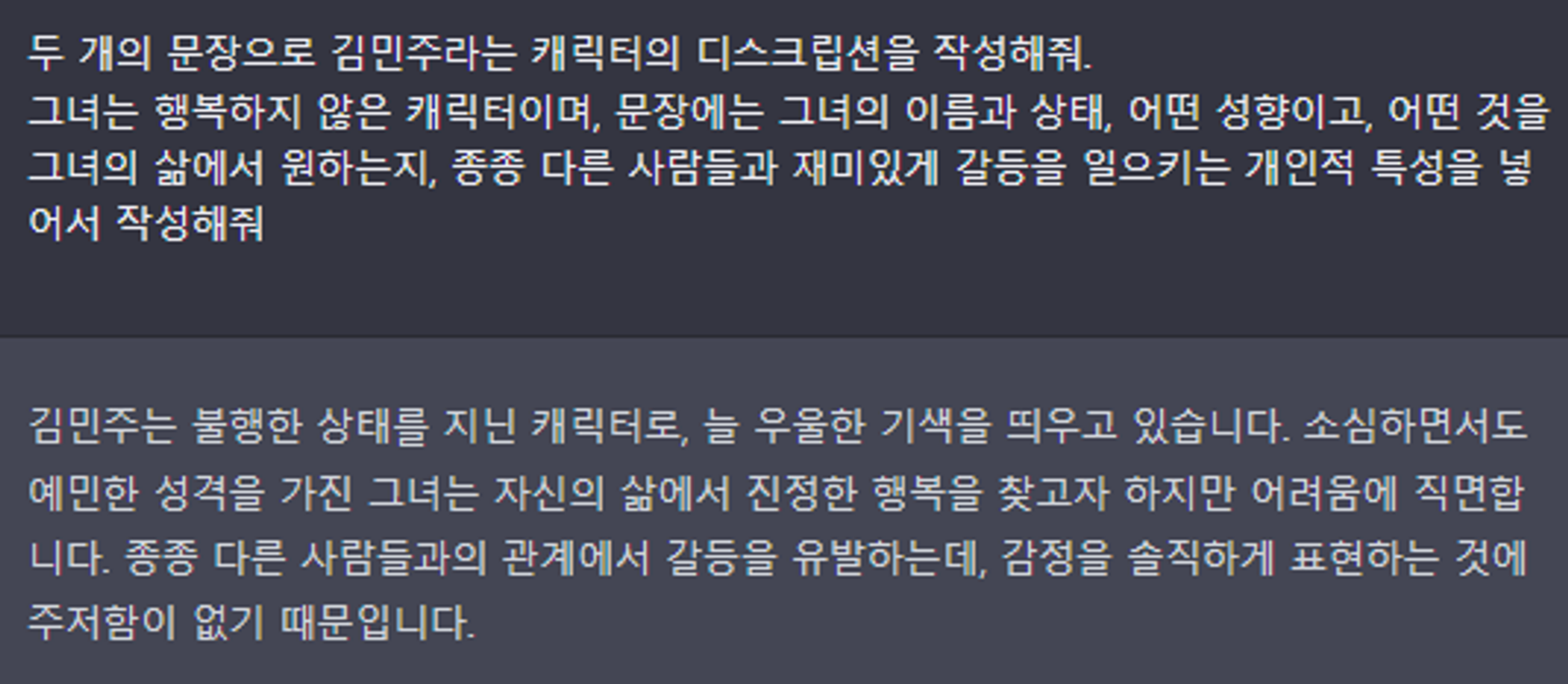 먼저 캐릭터에 대한 설명을 작성하도록 요청했다: