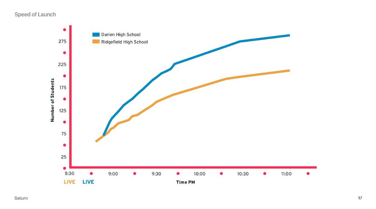 처음부터 Saturn은 사용자의 일과를 관리하는 일차적인 싱글플레이어 유틸리티에 친구들이 고등학교 시절에 무엇을 했는지 볼 수 있는 멀티플레이어 또는 '소셜' 가치를 결합했습니다. 시간이 지남에 따라 새로운 유틸리티와 소셜 사용 사례를 도입하고 이에 대한 투자를 지속하고 있지만, 처음엔 싱글플레이어였지만 나중에는 각 학교를 완벽하게 지원하는 멀티플레이어 달력이라는 고정된 훅을 유지하고 있습니다.