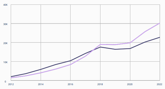 +135% in 2020 | +108% in 2021 | +20% in 2022 | +14% in 2023