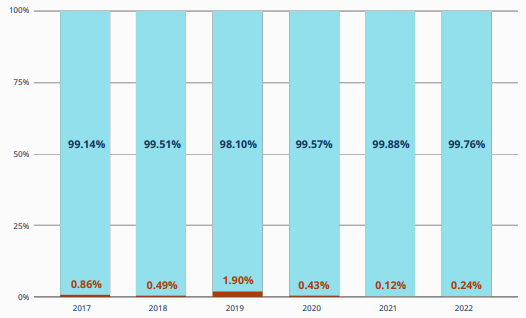 블록체인 분석 회사들은 암호화폐 활동의 2% 미만이 불법 거래라고 추정합니다. 2022년에는 이러한 활동이 전체 암호화폐 활동의 약 0.10-0.24%를 차지했습니다.