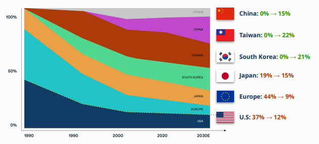 1990년부터 2020년까지의 반도체 제조업체 리더들: