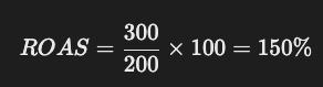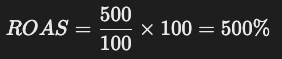 예를 들어, 100만 원을 광고에 투자해서 500만 원의 매출을 올렸다면, ROAS는 **500%**다.